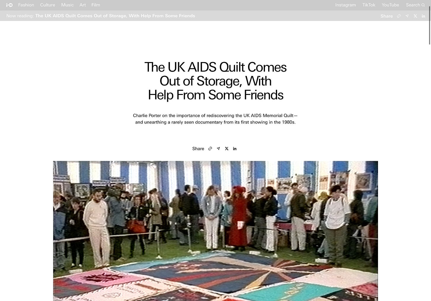 The UK AIDS Quilt Comes Out of Storage, With Help From Some Friends on I-D